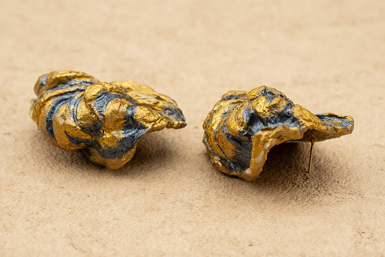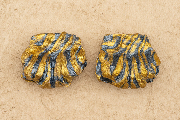 Handmade Oversized Abstract Gold / Metallic Blue Stud Earrings.