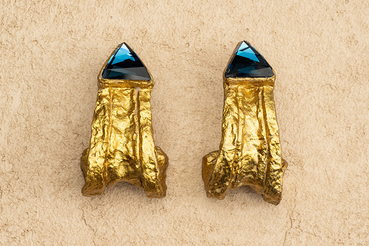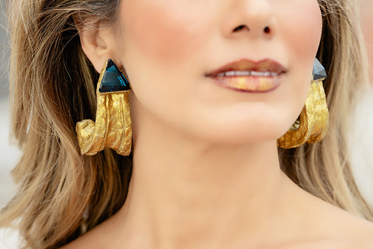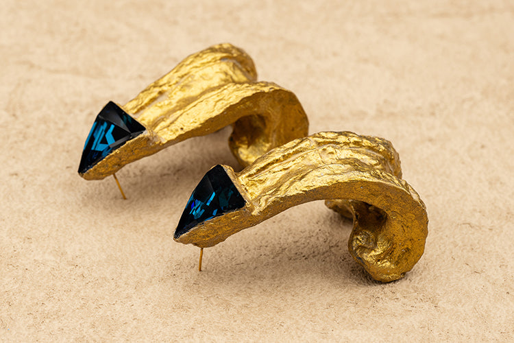 Handmade Hammered Oversized Abstract Gold Stud Earrings.