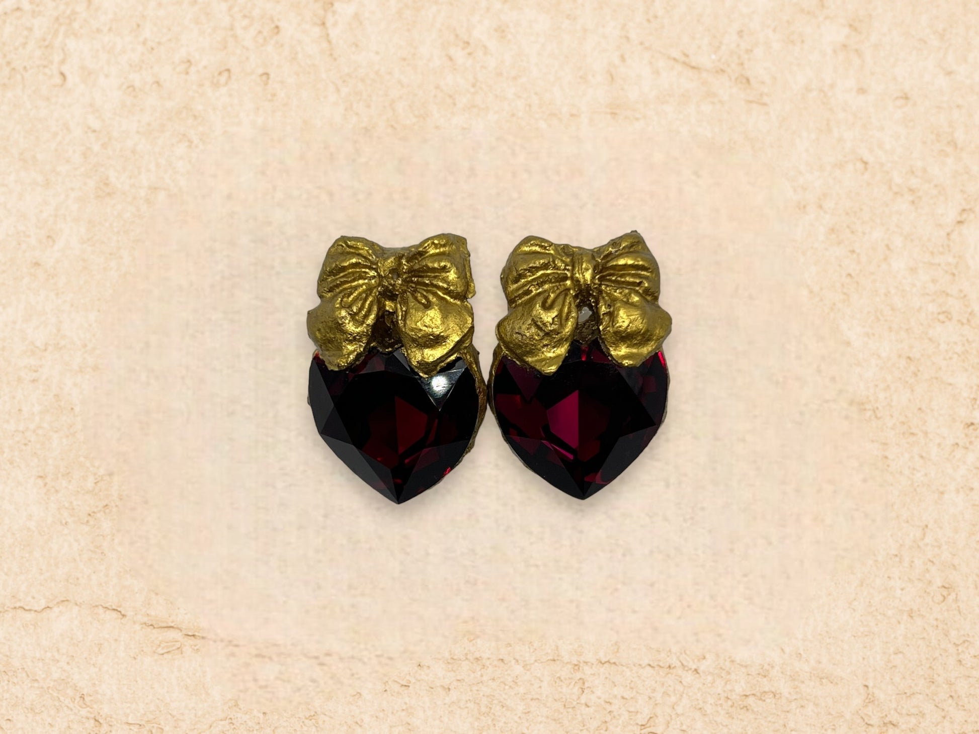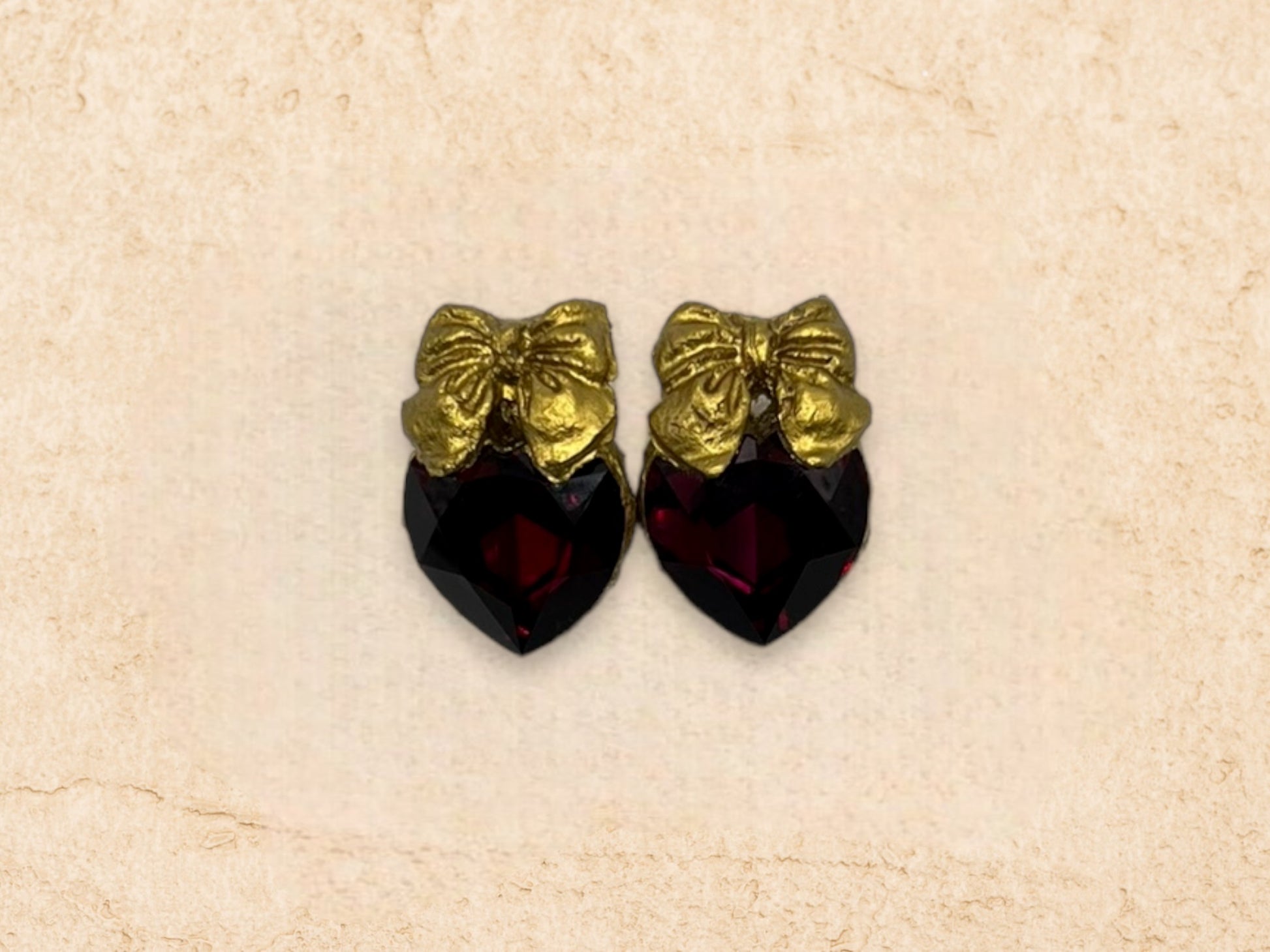 Handmade Heart Bow Tie Gold Stud Earrings.