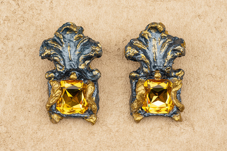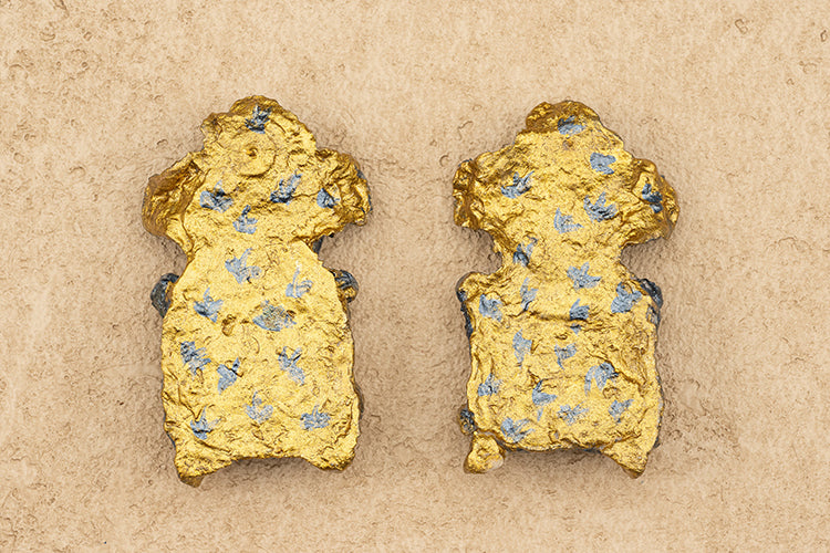 - Paper Mache, Gold leaf and Gold leaf powder, mixed with Blue Metallic paint.