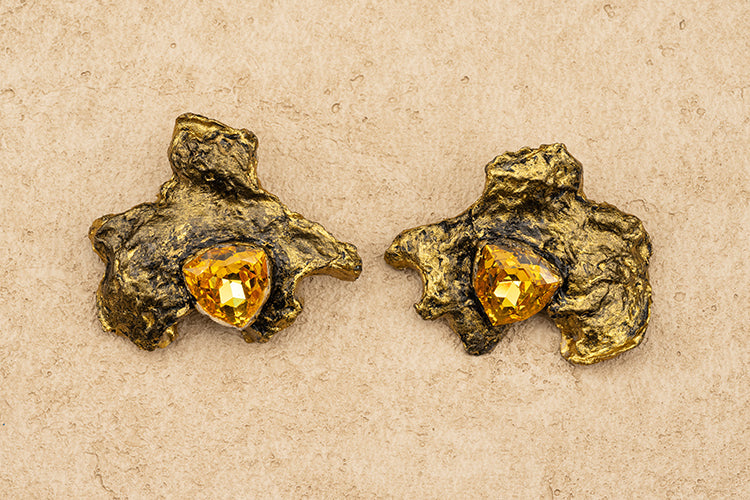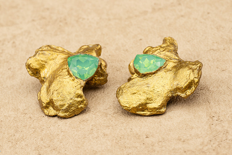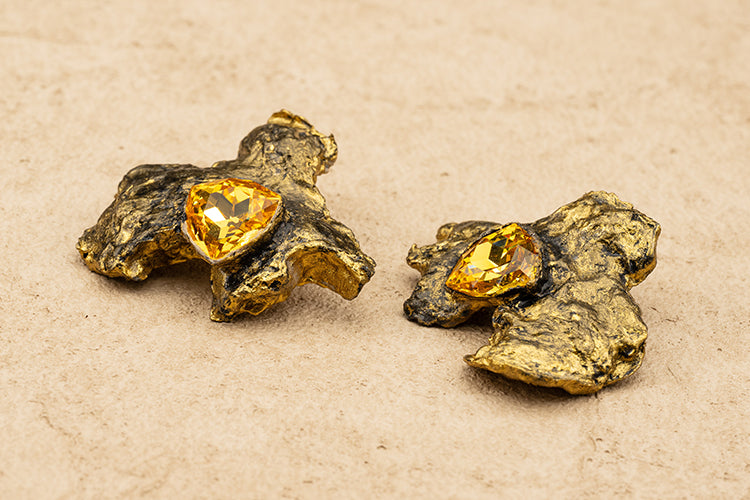 Handmade Abstract Gold Stud Earrings.