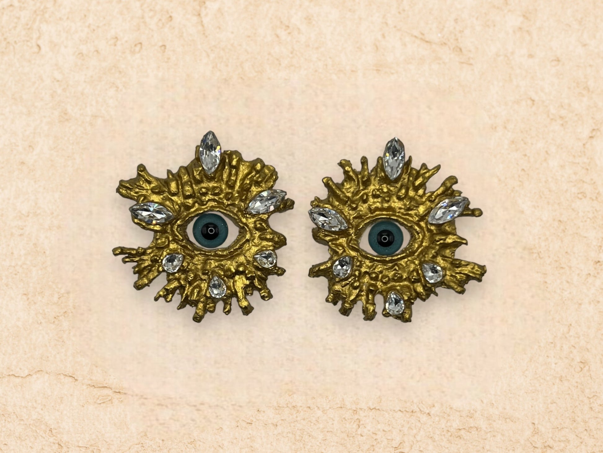 Handmade Glass Eye Sun shape Gold Stud Earrings.